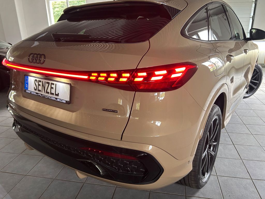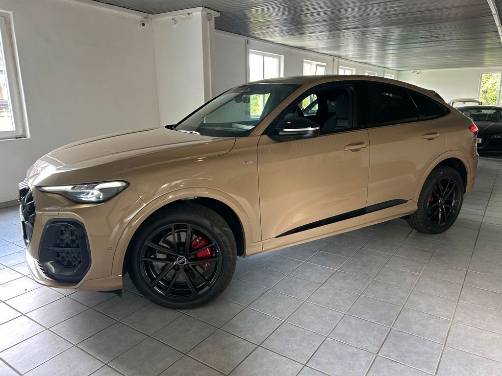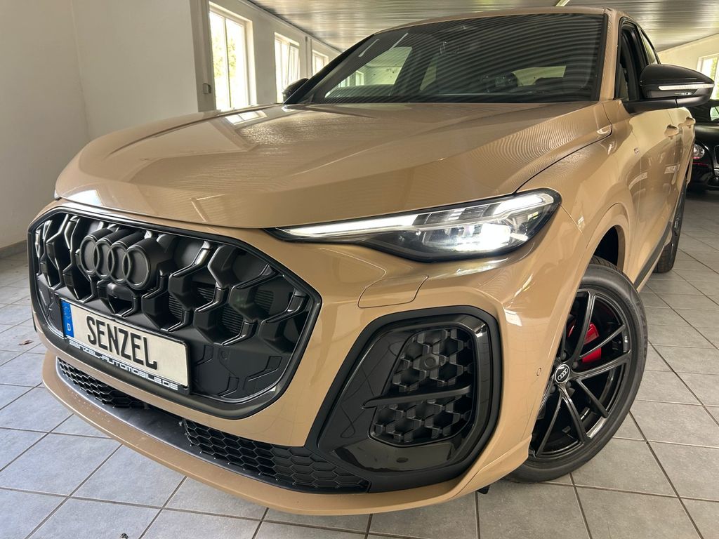 NEUES MODEL !! NEUER Q5 SPORTBACK TDI QUATTRO SOFORT !! S-LINE ALU 20",PANORAMA GLASDACH,LEDER SPORTSITZE schwarz,S-LINE EXT+INTERIEUR,PRIVACYGLAS,ROTE BREMSE,KAMERA,S-SPORTFAHRWERK,Exterieurpaket schwarz,Vollackierung,Ablagenpaket,Ambientepaket,Aussenspiegel schwarz,Sportpaket uvm..NEU,SOFORT - Ablage- und Gepäckraum-Paket, Außenspiegel elektr. verstell-, heiz- und anklappbar, mit Abblendautomatik und Bordsteinautomatik, Außenspiegel schwarz, Bremssättel Rot lackiert, Einstiegsleuchten LED mit Projektionsfunktion, Exterieur-Paket S line, Fahrassistenz-System: Fernlichtassistent, Fahrassistenz-System: Parklenkassistent plus, Innenausstattung: Dekoreinlagen Aluminium matt gebürstet, Anthrazit, Innenspiegel mit Abblendautomatik, Interieur-Paket: S / S line mit Sportsitze, Sitzbezug Leder / Kunstleder, schwarz, Komfort-Klimaautomatik 3-Zonen, LM-Felgen 8x20 (5-Doppelspeichen, Schwarz-Metallic, Audi Sport), Panoramadach elektrisch - vorn und hinten, Rückfahrkamera, Scheinwerfer LED Plus, Sonderlackierung Sakhir-Gold Metallic, Verglasung hinten abgedunkelt (Privacyverglasung) - - Weitere Ausstattung: - Airbag Fahrer-/Beifahrerseite, Akustischer Fußgängerschutz, Außensound (e-sound), Audi connect (Internetbasierende Dienste), Audi connect (Notruf- und Assistance-System), Audi Drive Select, Blinkleuchten LED in Außenspiegel integriert, Bluetooth-Freisprecheinrichtung mit Audi Phone Box light, Exterieur-Paket Advanced, Fahrassistenz-System: Ablenkungs- und Müdigkeitserkennung, Fahrassistenz-System: Ausweich-Assistent, Fahrassistenz-System: Kreuzungs-Assistent, Fahrassistenz-System: Notbremsassistent Front assist mit Fußgänger- und Fahrraderkennung, Fahrassistenz-System: Spurverlassenswarnung, Fahrassistenz-System: Verkehrszeichenerkennung, Fensterzierleisten Aluminium-Optik, Frontscheibe Wärmeschutzverglasung, Funkschlüssel, Fußmatten Velours, Gepäckraum-Abtrennung (Netz), Gepäckraumklappe elektr. betätigt (öffnen + schliessen), Geschwindigkeits-Begrenzeranlage, Harnstofftank (SCR): 24 Ltr., Heckleuchten LED, Innenausstattung: Aluminium-Optik, Innenbeleuchtungs-Paket, Isofix-Aufnahmen für Kindersitz an Beifahrersitz und Rücksitz, Karosserie: 5-türig, Kombiinstrument digital (virtual cockpit plus), Komfort-Fahrwerk, Lenkradapplikation Chromoptik, Lenksäule (Lenkrad) mech. Höhen-/Längsverstellung, Mild-Hybrid 150 kW (Motor 2,0 Ltr. - 150 kW 16V TDI), Mild-Hybrid-Technologie, MMI Experience plus, Nichtraucher-Paket, Radioempfang digital (DAB), Radstand Standard, Reifen-Reparaturkit, Reifenkontroll-Anzeige, Schadstoffarm nach Abgasnorm Euro 6e, Seitenairbag vorn, Sitzbelegungserkennung für Sicherheitsgurte, Sitze vorn manuell einstellbar, Sitzheizung vorn, USB-Ladeanschlüsse (2-fach, Typ C) für Fondpassagiere, Vorbereitung Lichtassistent für weitere Funktionen (feature on demand, FOD)
